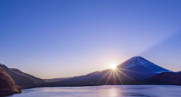 当館からお車で約10分昇ってくる、もしくは沈んでゆく太陽が富士山の山頂にピッタリと重なる現象「ダイヤモンド富士」。富士五大湖の中で、本栖湖周辺は富士山が東側にあるため、日の出のダイヤモンド富士を見ることができます。 見頃は1月〜2月。